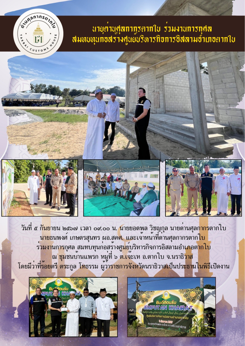 //++นายยอดพล วิชญกุล นายด่านศุลกากรตากใบ ร่วมงานการกุศลสมทบทุนก่อสร้างศูนย์บริหารกิจการอิสลามอำเภอตากใบ++//