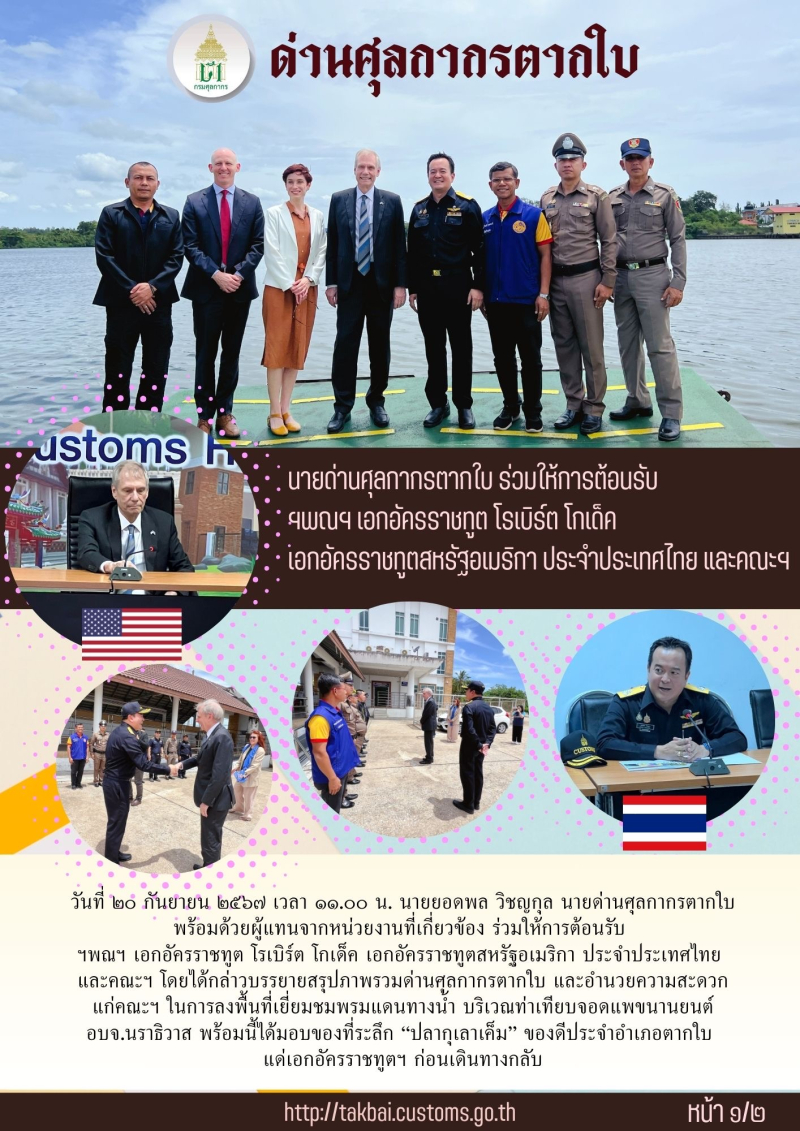 //++นายด่านศุลกากรตากใบ ร่วมให้การต้อนรับ ฯพณฯ เอกอัครราชทูต โรเบิร์ต โกเด็ค เอกอัครราชทูตสหรัฐอเมริกา ประจำประเทศไทยและคณะฯ++//