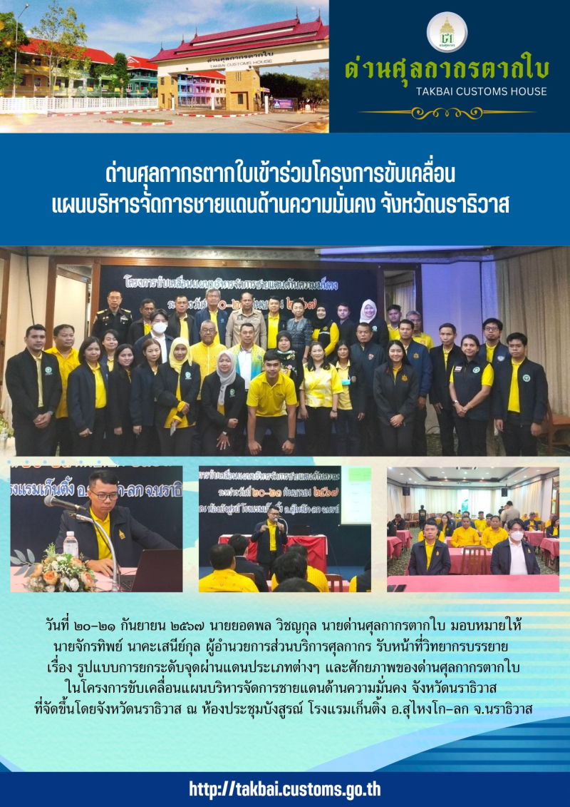 //++ด่านศุลกากรตากใบ++เข้าร่วมโครงการขับเคลื่อนแผนบริหารจัดการชายแดนด้านความมั่นคง จังหวัดนราธิวาส++//