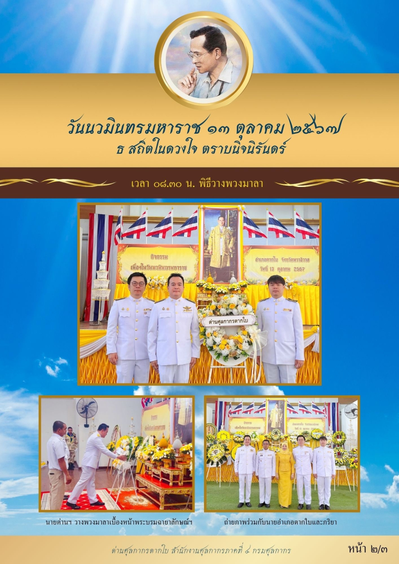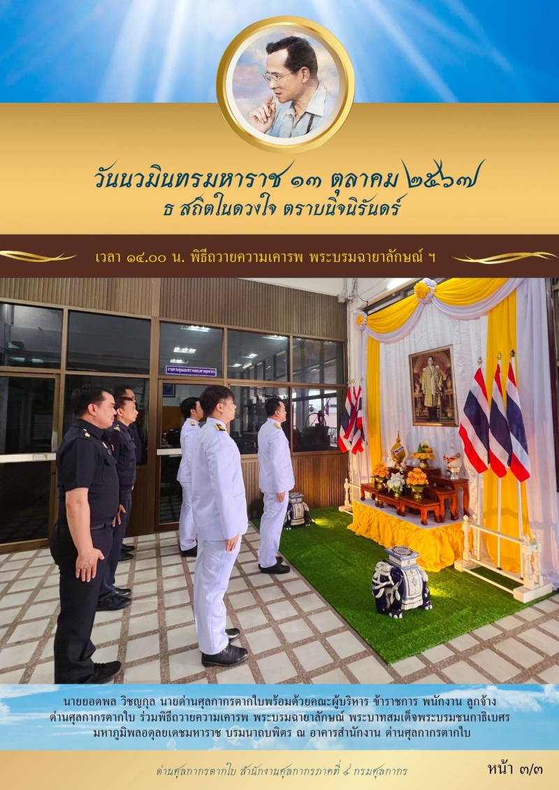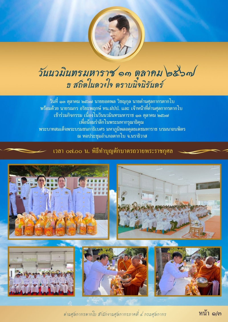 //++นายยอดพล วิชญกุล นายด่านศุลกากรตากใบ พร้อมด้วยเจ้าหน้าที่ด่านศุลกากรตากใบ เข้าร่วมกิจกรรม เนื่องในวันนวมินทรมหาราช ๑๓ ตุลาคม ๒๕๖๗++//