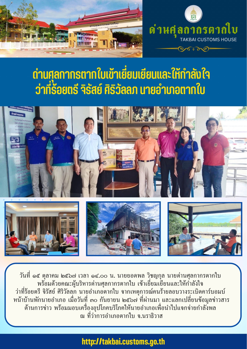 //++ด่านศุลกากรตากใบ เข้าเยี่ยมเยียนและให้กำลังใจ ว่าที่ร้อยตรี จิรัสย์ ศิริวัลลภ นายอำเภอตากใบ++//