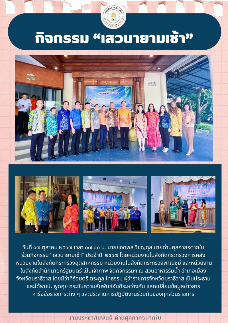 //++นายยอดพล วิชญกุล นายด่านศุลกากรตากใบ ร่วมกิจกรรม "เสวนายามเช้า" จ.นราธิวาส++//