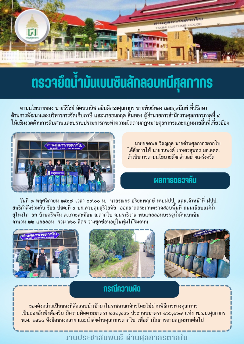 //++ด่านศุลกากรตากใบตรวจยึดน้ำมันเบนซินลักลอบหนีศุลกากร++//