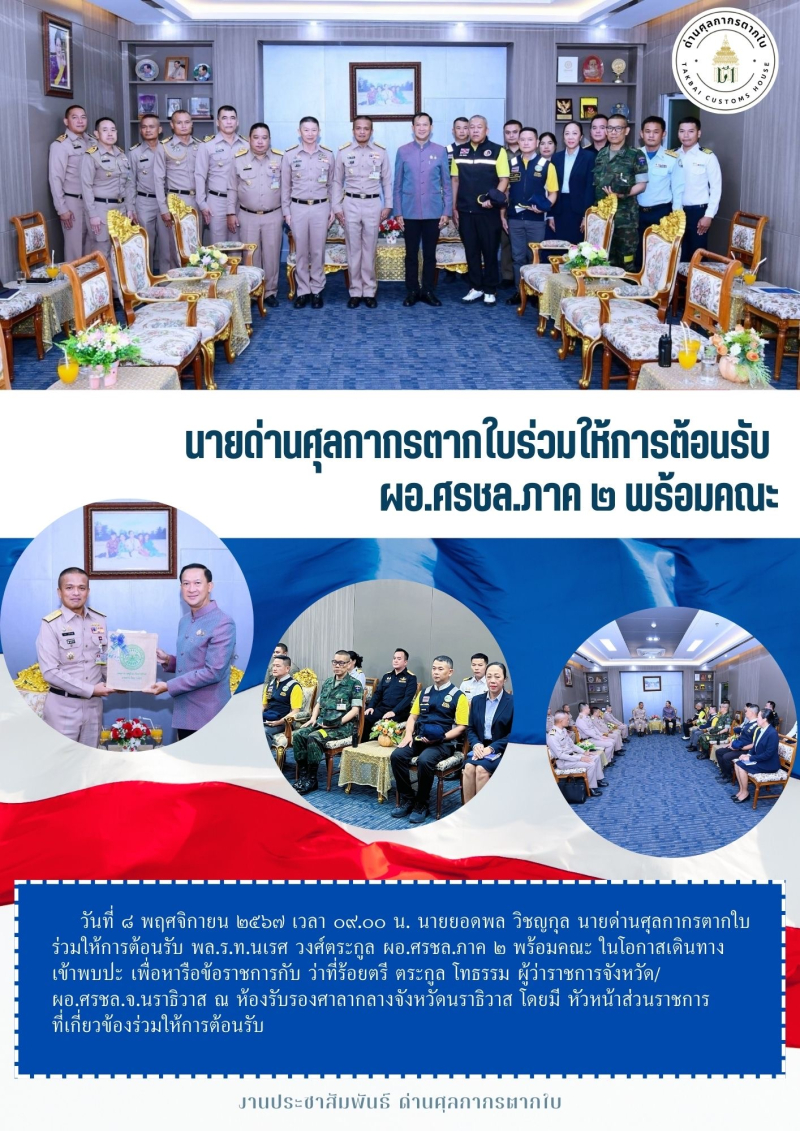 //++นายด่านศุลกากรตากใบร่วมให้การต้อนรับ ผอ.ศรชล.ภาค 2 พร้อมคณะ ในโอกาสเดินทางมาหารือข้อราชการ ณ จังหวัดนราธิวาส++//