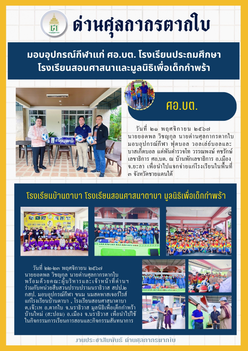 //++ด่านศุลกากรตากใบมอบอุปกรณ์กีฬาแก่ ศอ.บต. โรงเรียนประถมศึกษา โรงเรียนสอนศาสนาและมูลนิธิเพื่อเด็กกำพร้า++//
