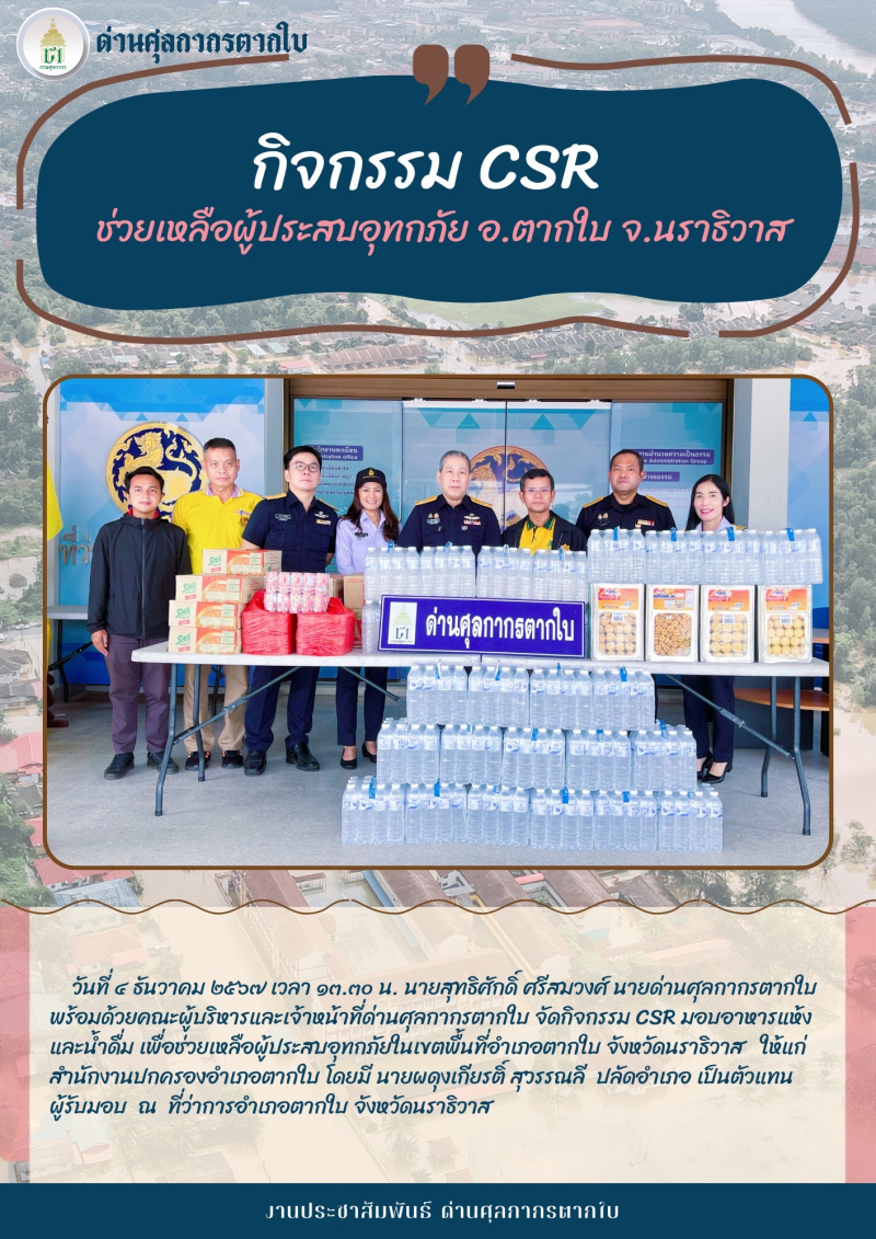 //++ด่านศุลกากรตากใบ จัดกิจกรรม CSR ช่วยเหลือผู้ประสบอุทกภัย อ.ตากใบ จ.นราธิวาส++//