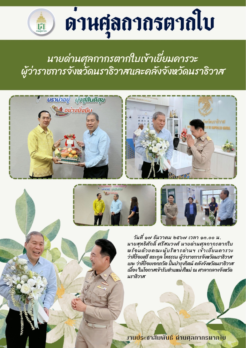 //++นายด่านศุลกากรตากใบเข้าเยี่ยมคารวะผู้ว่าราชการจังหวัดนราธิวาสและคลังจังหวัดนราธิวาสเนื่องในโอกาสเข้ารับตำแหน่งใหม่++//