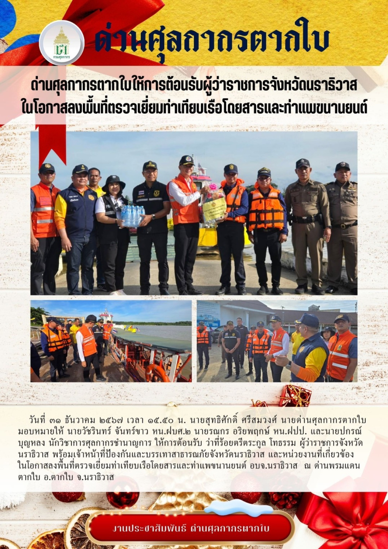 //++ด่านศุลกากรตากใบให้การต้อนรับผู้ว่าราชการจังหวัดนราธิวาสในโอกาสลงพื้นที่ตรวจเยี่ยมท่าเทียบเรือโดยสารและแพขนานยนต์++//