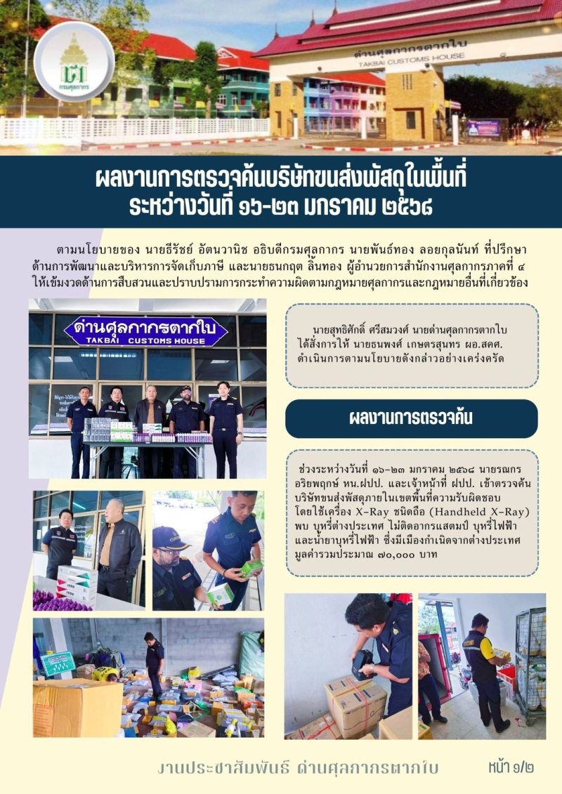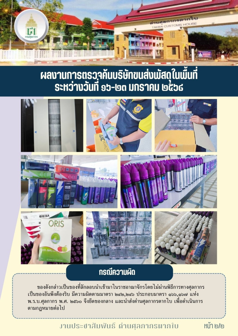 //++ด่านศุลกากรตากใบ++ผลงานการตรวจค้นบริษัทขนส่งพัสดุในพื้นที่ ระหว่างวันที่ 16-23 มกราคม 2568++//