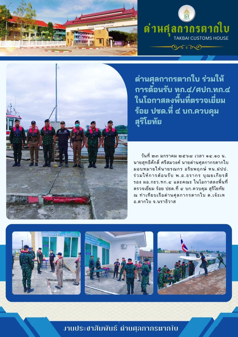 //ด่านตากใบ ให้การต้อนรับ ทภ.4/ศปก.ทภ.4ในโอกาสลงพื้นที่ตรวจเยี่ยมร้อย ปชด.ที่ 4 บก.ควบคุมสุริโยทัย