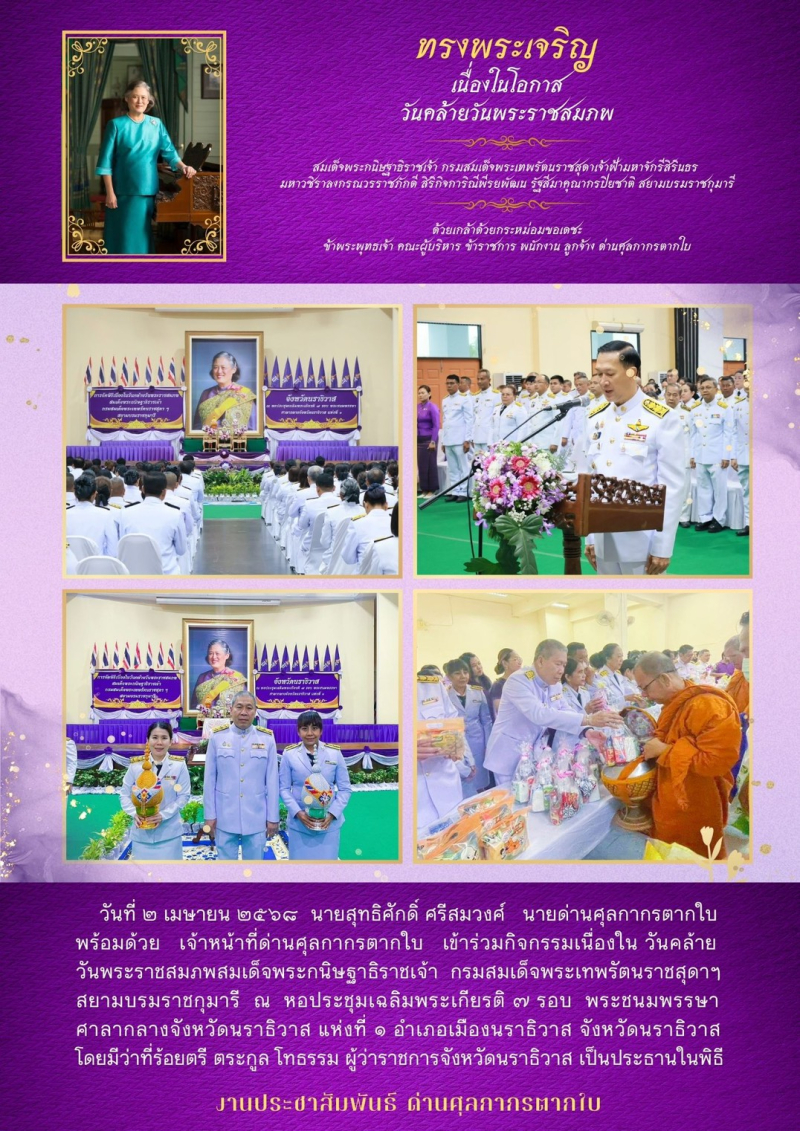 //++ด่านศุลกากรตากใบ++เข้าร่วมกิจกรรมเนื่องในวันคล้ายวันพระราชสมภพสมเด็จพระกนิษฐาธิราชเจ้า กรมสมเด็จพระเทพรัตนราชสุดาฯ สยามบรมราชกุมารี++//