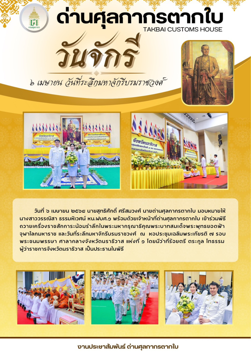 //++ด่านศุลกากรตากใบ++ร่วมกิจกรรมวันที่ระลึกมหาจักรีบรมราชวงศ์ ๖ เมษายน ๒๕๖๘++//