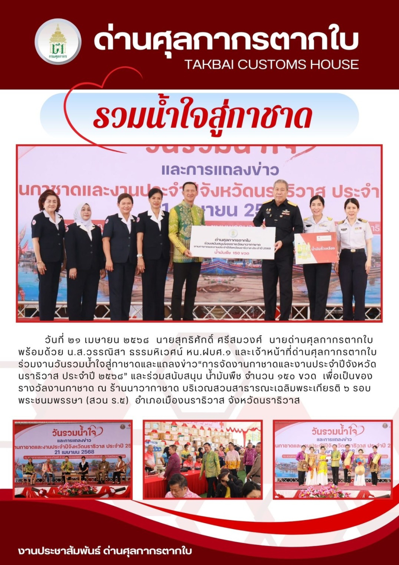 //++นายสุทธิศักดิ์ ศรีสมวงศ์ นายด่านศุลกากรตากใบ ร่วมงานวันรวมน้ำใจและแถลงข่าวการจัดงานกาชาดและงานประจำปีจังหวัดนราธิวาส ประจำปี 2568++//