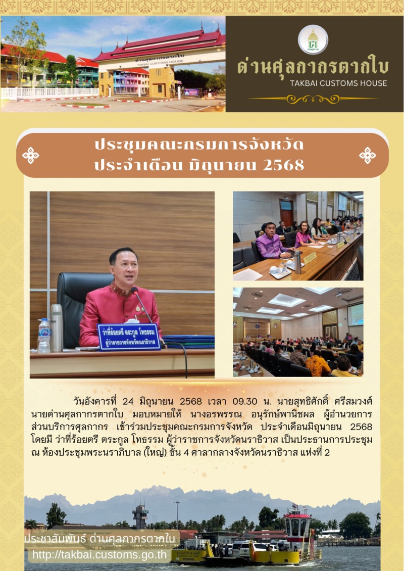 ***ด่านศุลกากรตากใบ ประชุมคณะกรมการจังหวัดประจำเดือน มิถุนายน 2568***