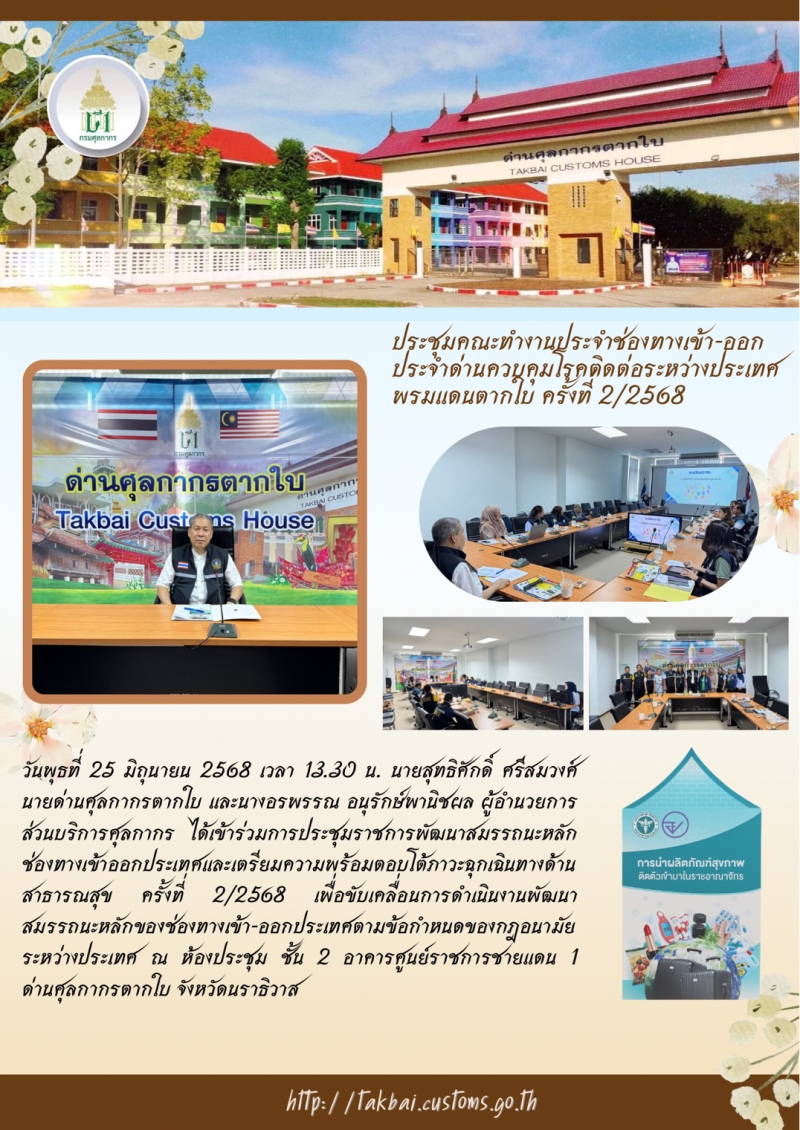 ***ด่านศุลกากรตากใบ ประชุมคณะทำงานประจำช่องทางเข้า-ออก ประจำด่านควบคุมโรคติดต่อระหว่างประเทศพรมแดนตากใบ ครั้งที่ 2/2568***
