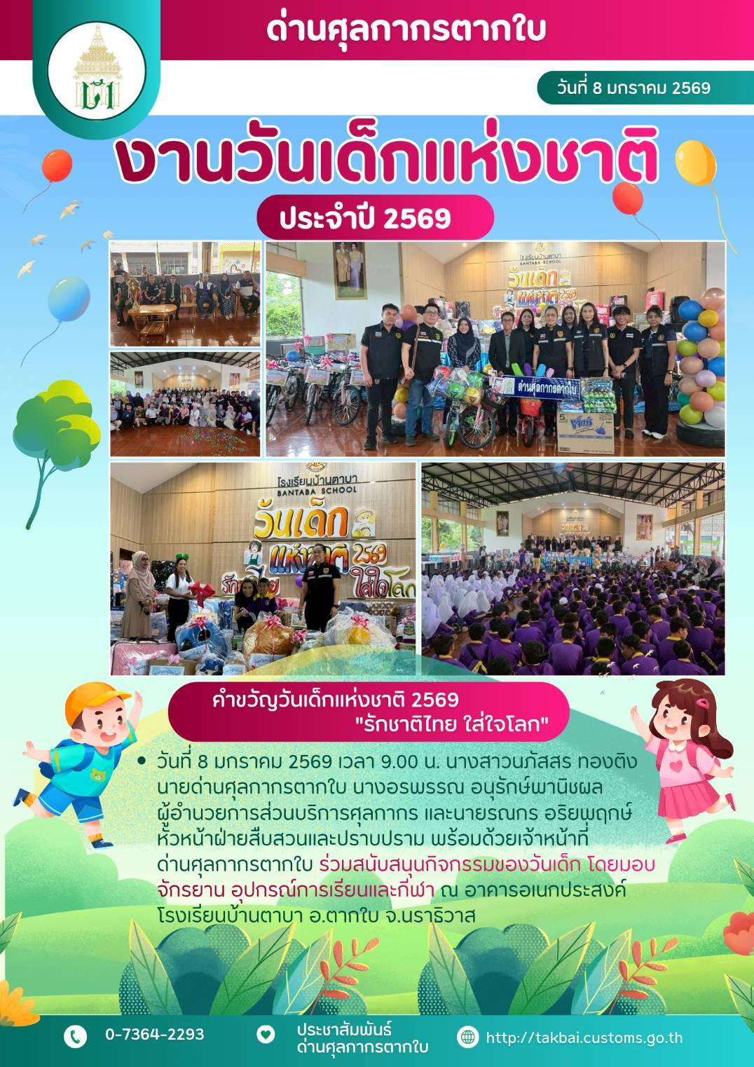 ***ด่านศุลกากรตากใบ ร่วมสนับสนุนกิจกรรมงานวันเด็ก โรงเรียนบ้านตาบา ประจำปี 2569***