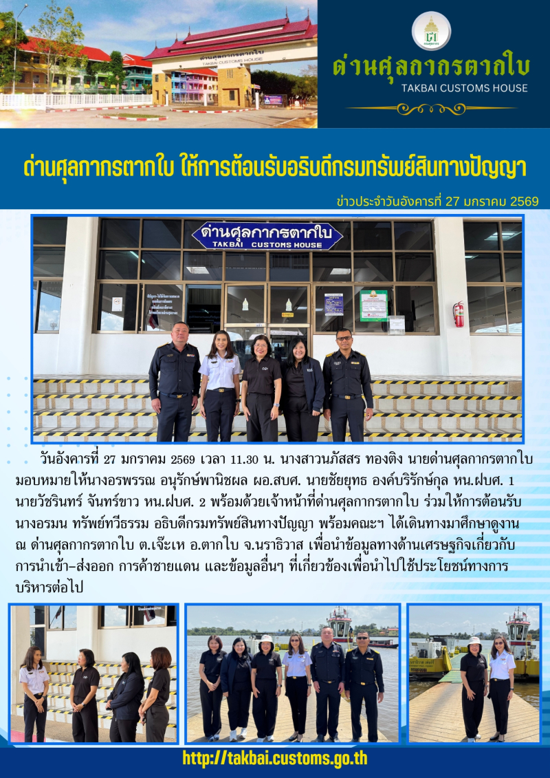 ด่านศุลกากรตากใบ ให้การต้อนรับอธิบดีกรมทรัพย์สินทางปัญญา
