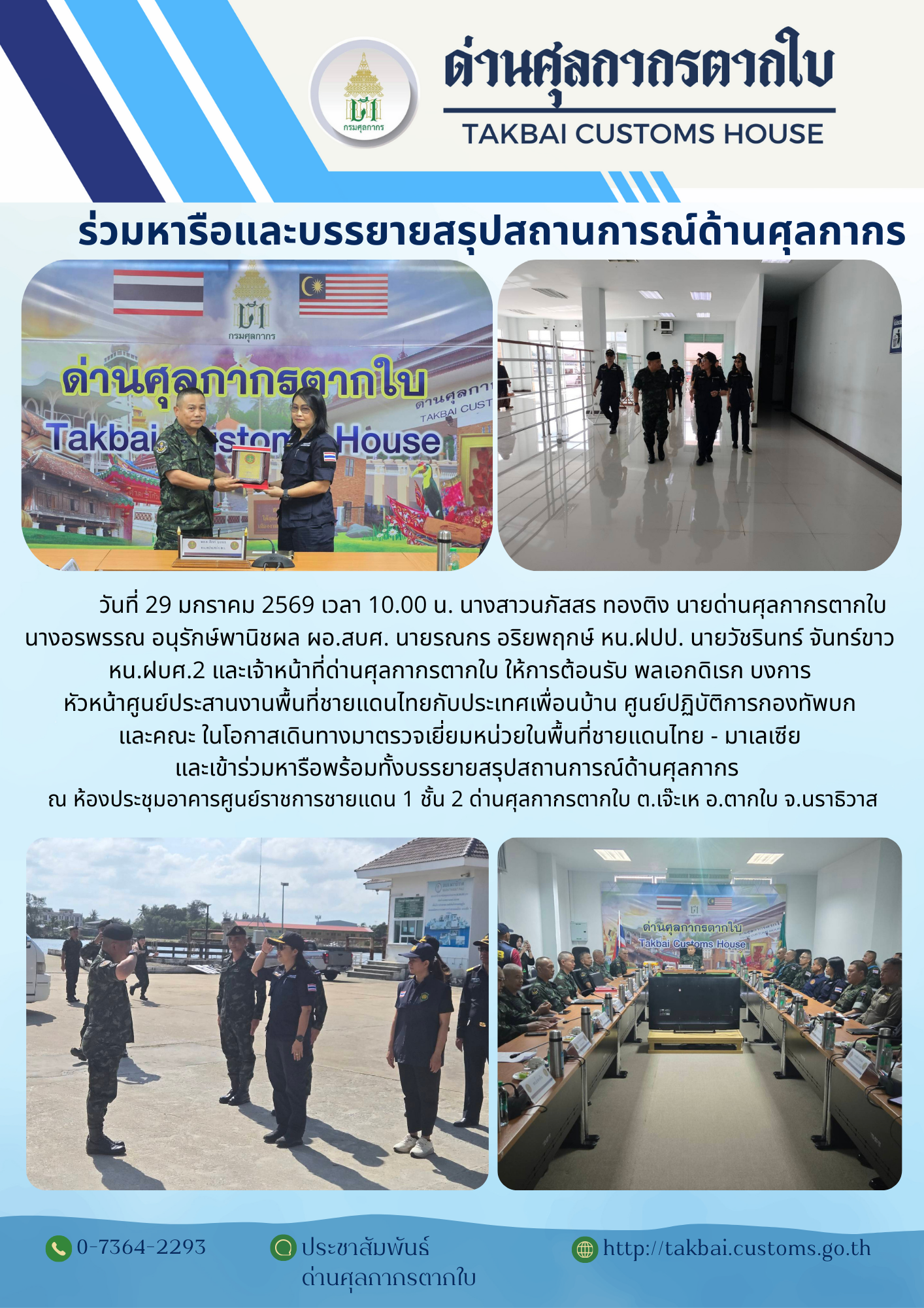 สอบถามข้อมูลเพิ่มเติมได้ที่ : ด่านศุลกากรตากใบ