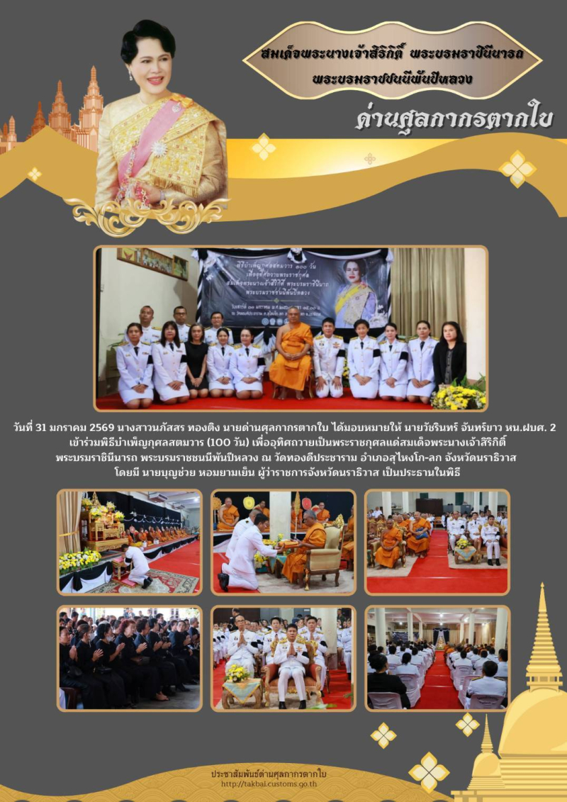 ***ด่านศุลกากรตากใบ*** เข้าร่วมพิธีบำเพ็ญกุศล สตมวาร (100 วัน) เพื่ออุทิศถวายเป็นพระราชกุศลแด่สมเด็จพระนางเจ้าสิริกิติ์ พระบรมราชินีนารถ พระบรมราชชนนีพันปีหลวง ณ วัดทองดีประชาราม