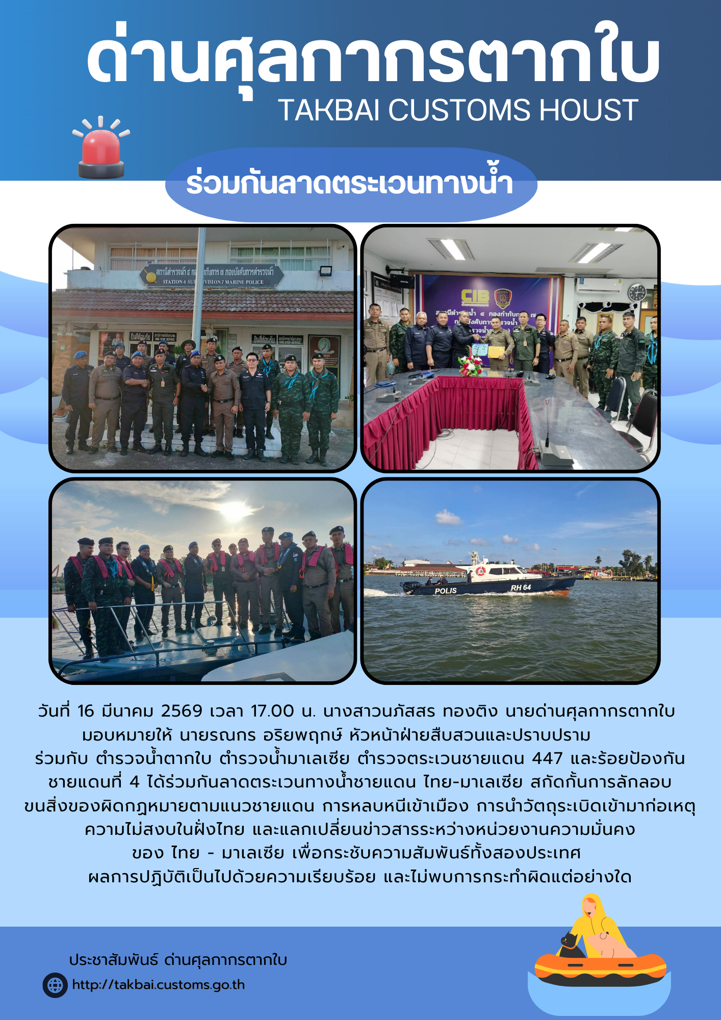 ///***ด่านศุลกากรตากใบ ร่วมกันลาดตระเวนทางน้ำชายแดน ไทย-มาเลเซีย***///