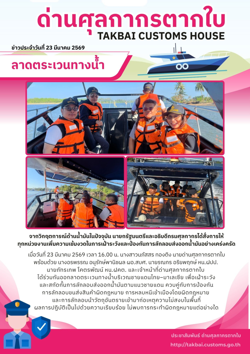 ด่านศุลกากรตากใบ ลาดตระเวนทางน้ำ